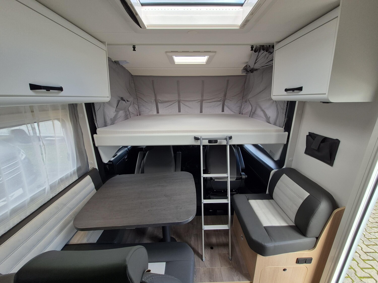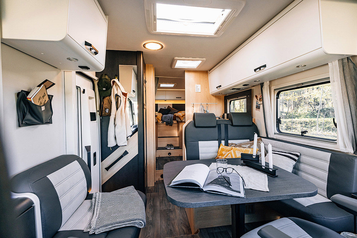 - Großzügiges Raumgefühl: Genieße echten Luxus und viel Platz dank der vollintegrierten Bauweise und einer komfortablen L-Sitzgruppe. Große Fenster sorgen für eine hervorragende Rundumsicht und ein helles Ambiente.